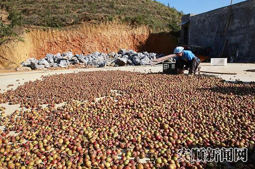 “从2014年开始,通过土地流转的形式,从群众手上以40元/亩租了1300多亩荒山,开始种植新品种高效油茶,经过几年的护理,今年已经进入初果期,今年大概能采收50吨左右。”陈飞澍望着满山坡挂着果的油茶树,脸上露出喜悦的笑容,他向记者算了一笔账,待油茶到了盛产期,每亩可产油茶果1.6吨左右,可榨油160斤左右,按照50元/斤茶油的市场价,一亩地毛产值可达到8000元。
