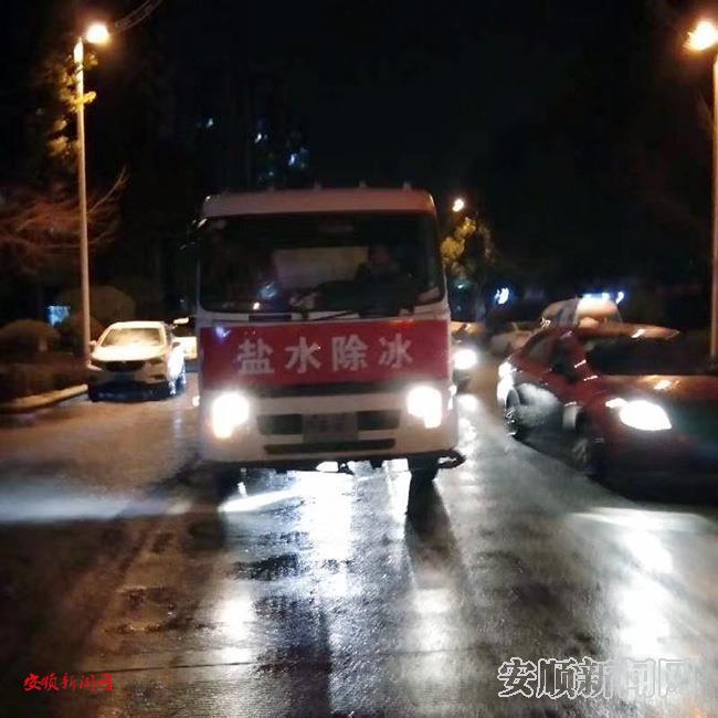 12月29日晚9时至11时,对路面有结冰现象的机场路等路段撒盐除冰,有效缓解部分路面积雪结冰情况,并用增盐洒水的方式对辖区凝冻路段路面进行除冰,力保城区道路畅通。