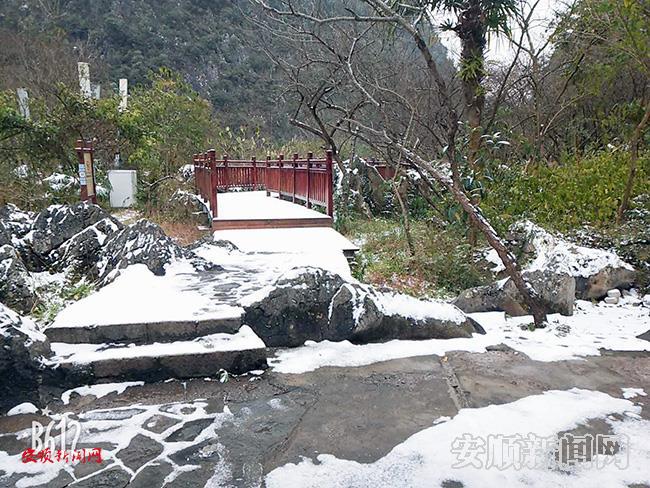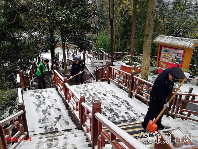 12月30日上午10时30分,记者从龙宫景区获悉,因天气原因,现景区内群芳谷路段木栈道已凝冻,目前正在组织清理木栈道易滑路段积雪。