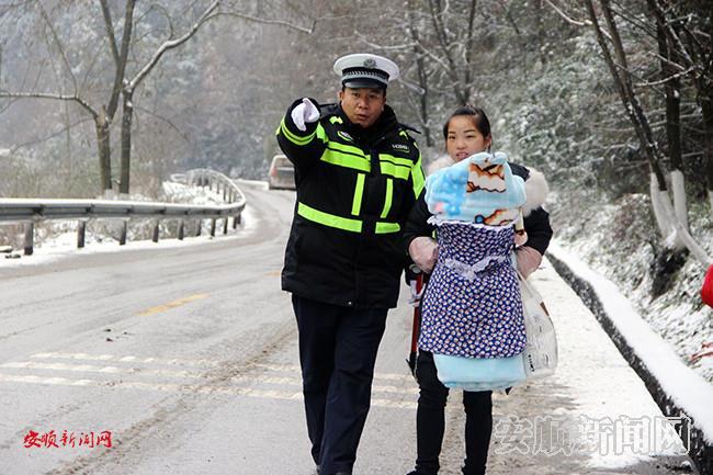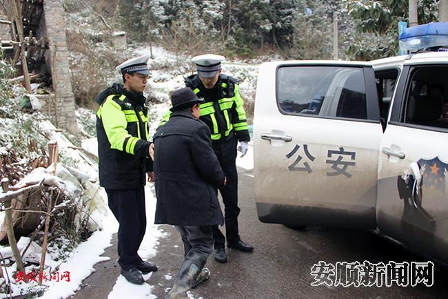30日上午,在丁旗街道往六枝方向的省道102凉山段出现暖心的一幕。一个大爷行走在冰雪铺满的马路上,交警大队丁旗中队负责人孙亚看到大爷的腿脚行动不便,便上前问大爷要到哪里去,大爷说他有急事要赶去丁旗,因为凝冻没有公交车运营,加上自己行动不便,已经摔了好几跤。看到大爷蹒跚的步履,想到从凉山到丁旗还有7公里,又一路的湿滑,为了老人的安全,孙亚便将老人扶上警车,将老人护送到丁旗。老人下车后,激动地拉着孙亚的手说:“要是没有你们,我不知道要走到何时,真的很感谢警察同志”。