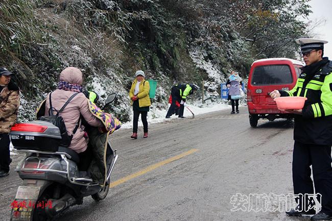 受冷空气影响,12月29日下午,镇宁普降大雪,结冰现象明显,为了保障人民群众的出行安全和人生安全,镇宁县公安局多措并举,全力以赴,确保群众安全。