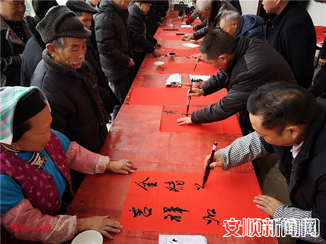 年至禧临,写春联送春联活动温暖着百姓的心。本次活动中,书法爱好者们为村民书写了上千幅春联,赢得了村民们的一致赞美和欢迎,接下来他们还将在大西桥镇周边的村寨开展写春联送春联活动,将这红红火火的饱含祝福的春联送到村民手中。(黔中早报记者 田畅)