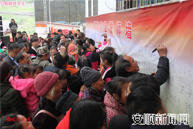 在随后举行的脱贫攻坚政策抢答赛上,男女老少竞相答题,拿奖品,获荣誉。最后,大家还在脱贫攻坚誓师墙上庄重的签下了自己对夺取脱贫攻坚全面胜利的庄重“承诺”。
