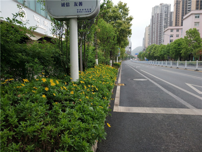 在中华南路与中华东路部分路段,记者看见这里种植的是加拿大海藻,矮化灌木选种的是开花彩叶植物和不同颜色的花卉进行装扮,在开花时节会形成强烈的视觉震撼。