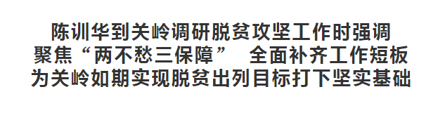 9月16日,市委书记、市长陈训华到关岭自治县调研贫困村脱贫攻坚工作。他强调,关岭自治县要深入学习贯彻落实省委十二届五次全会精神和市委四届六次全会精神,聚焦“两不愁三保障”标准,全面补齐工作短板,以产业结构调整为突破口,纵深推进振兴农村经济的深刻的产业革命,坚决夺取脱贫攻坚战全面胜利,以按时完成全县脱贫出列任务目标检验“不忘初心、牢记使命”主题教育成效。