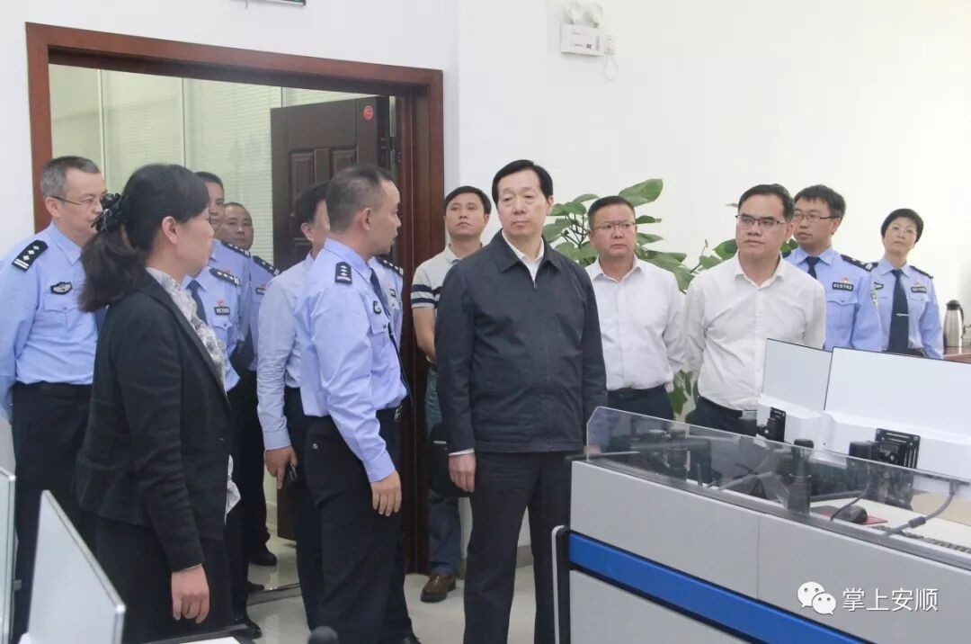 郭瑞民一行先后来到安顺西站、贵飞公司、市公安局指挥中心、市信访局,通过实地查看和听取汇报,详细了解交通安全、公共安全、信访维稳等工作,并在现场对相关工作进行指导。
