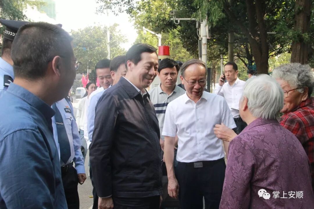 9月28日,副省长、省公安厅厅长郭瑞民率省国庆安保维稳工作督导组到我市,就新中国成立70周年大庆信访维稳安保工作进行督导调研。省政府副秘书长周乐职,省委政法委副书记何冀,市委书记、市长陈训华,市委常委、西秀区委书记郭伟谊,市委常委、市委宣传部部长、市委政法委书记张本强,副市长、市公安局局长杨茁,市法院院长蒋浩,市检察院检察长吴英陪同调研或参加座谈会。