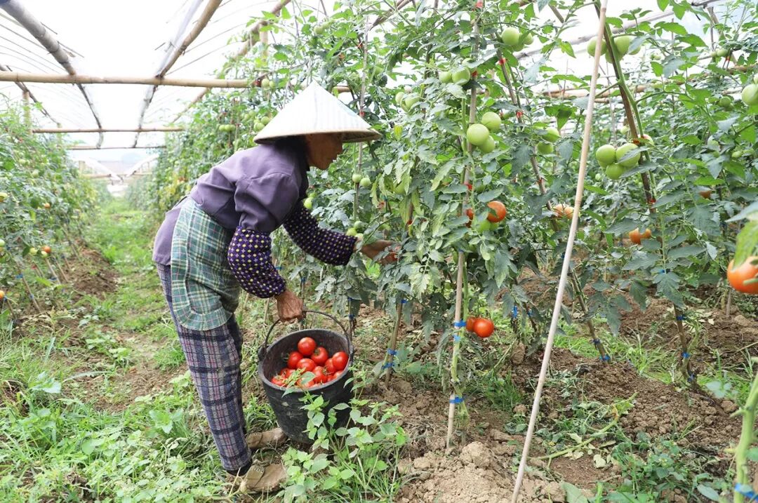 正在采摘的老人穆光美,一边采收西红柿,一边向记者说:“村里六七十岁的人,能在家门口工作,赚点小用钱,这是多亏村里的干部们搞产业搞得好。”