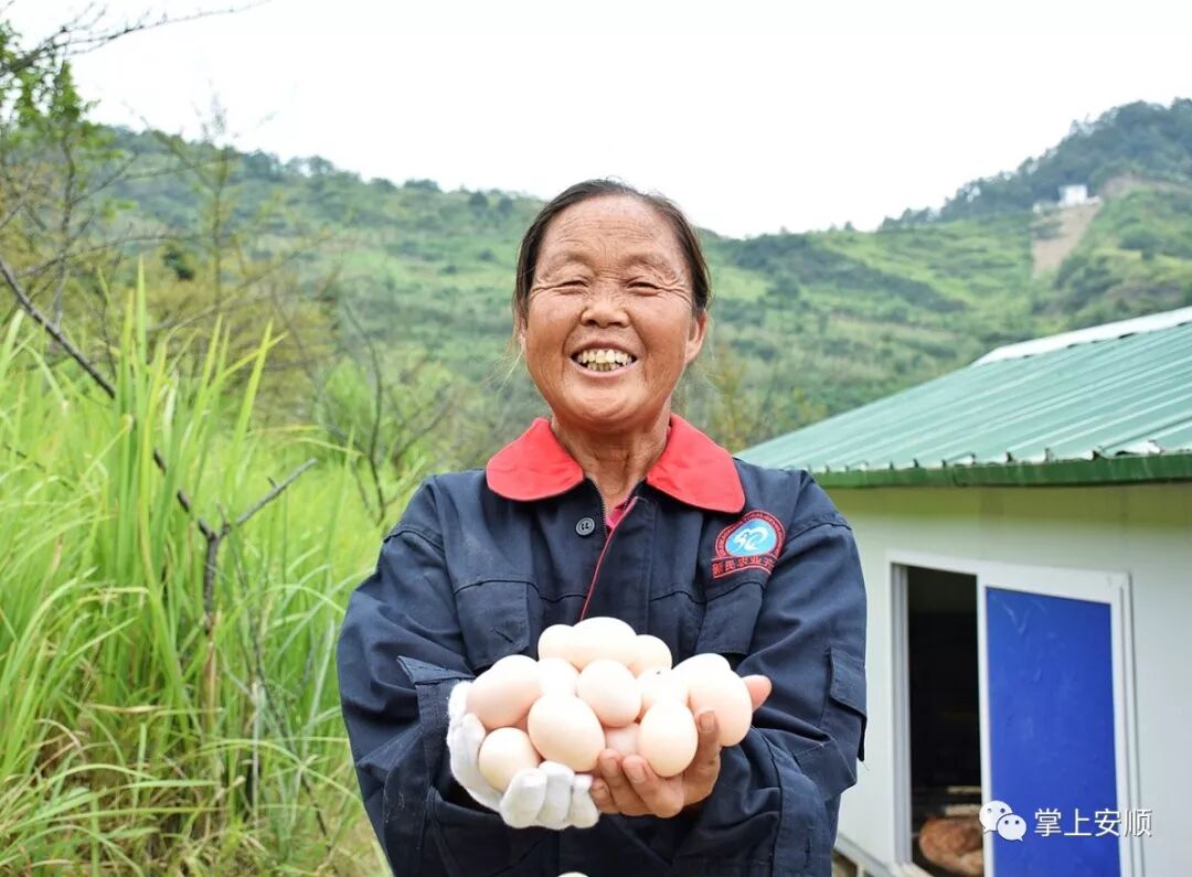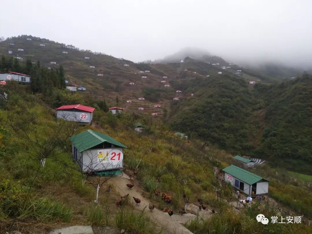 爬上紫云县松山街道办新民村打落岩组的后山上,站在半山腰的平台处,放眼望去,昔日的荒野山坡上,一个个蛋鸡鸡舍整齐划一地摆放着。