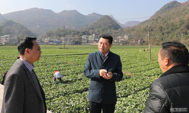 这是宋晓路到安顺工作不到两个月以来,第三次到深度贫困村暗访调研督导脱贫攻坚工作。他首先来到猴场镇克座500亩坝区,实地查看坝区产业结构调整工作,与项目业主谢顺超亲切交谈,询问产品销路、效益及贫困户就业等情况。