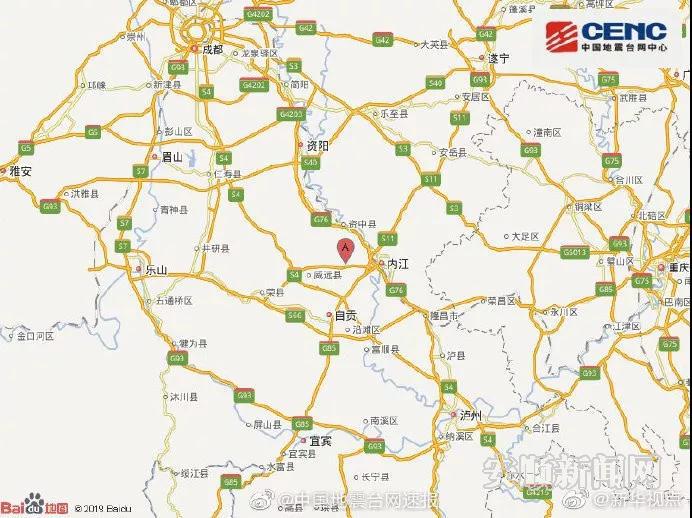 中国地震台网正式测定:12月18日08时14分,在四川内江市资中县(北纬29.59度,东经104.82度)发生5.2级地震,震源深度14公里。(新华网)