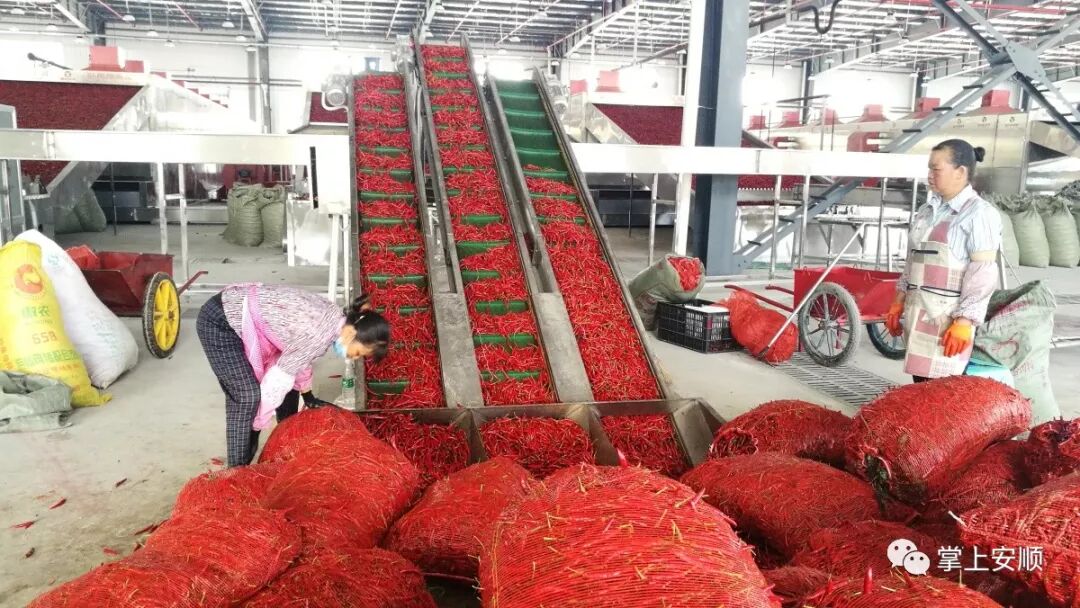 西秀区以辣椒产业走出了一条“种得上、管得好、产得出、卖得掉、卖得好”的农村产业革命新路。实施“菜单式”产业扶贫模式,以产定销、以销促产、产销衔接,按照“统一种苗、统一农资供应、统一技术标准、统一购买保险、统一订单收购”五统一方式推进,实现全区辣椒种植10万余亩,产量17.5万吨,产值5.02亿元,建成国内领先的自动化烘干线16组48条,实现日可烘干辣椒1120吨,产业覆盖16个乡镇、197个行政村,3.7万农户参与,户均增收7000元以上。