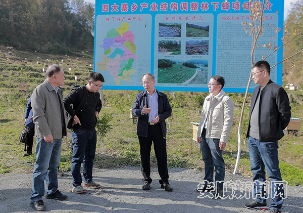 陈训华首先来到四大寨乡纳容村察看该村500亩退耕还林基地标准化养蜂场建设情况。纳容村充分利用区域内生态良好的优势,推动蜜蜂养殖业持续健康发展,有效带动周边贫困群众实现增收脱贫。陈训华要求紫云自治县和四大寨乡要结合现有的技术和生态优势,做大做强养蜂产业,切实提升产蜜质量,加大蜂蜜品牌打造力度,不断拓宽蜂蜜销售渠道;要建立健全利益联结机制,带动更多的贫困户参与到养蜂产业中来,加快全乡脱贫致富步伐。