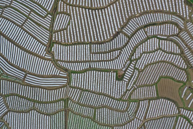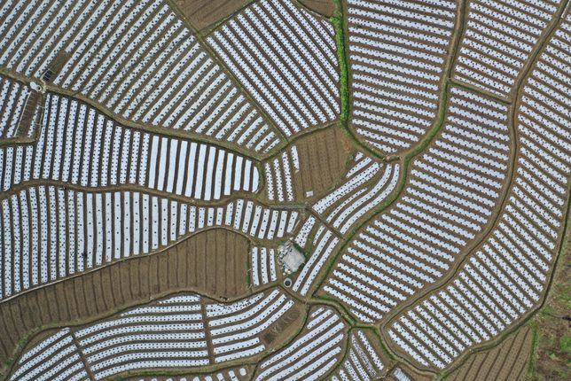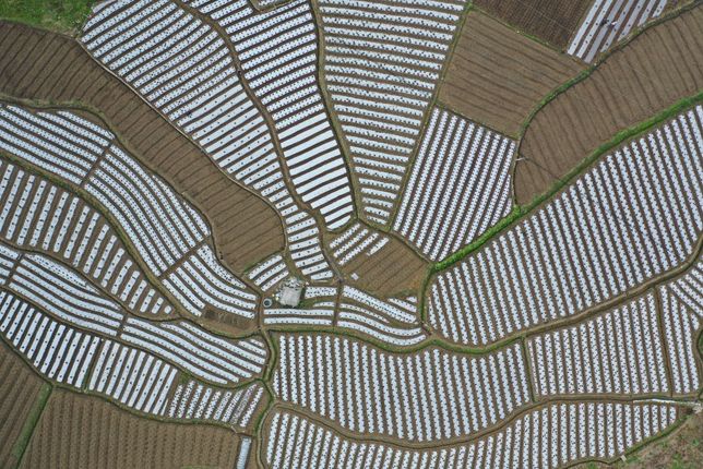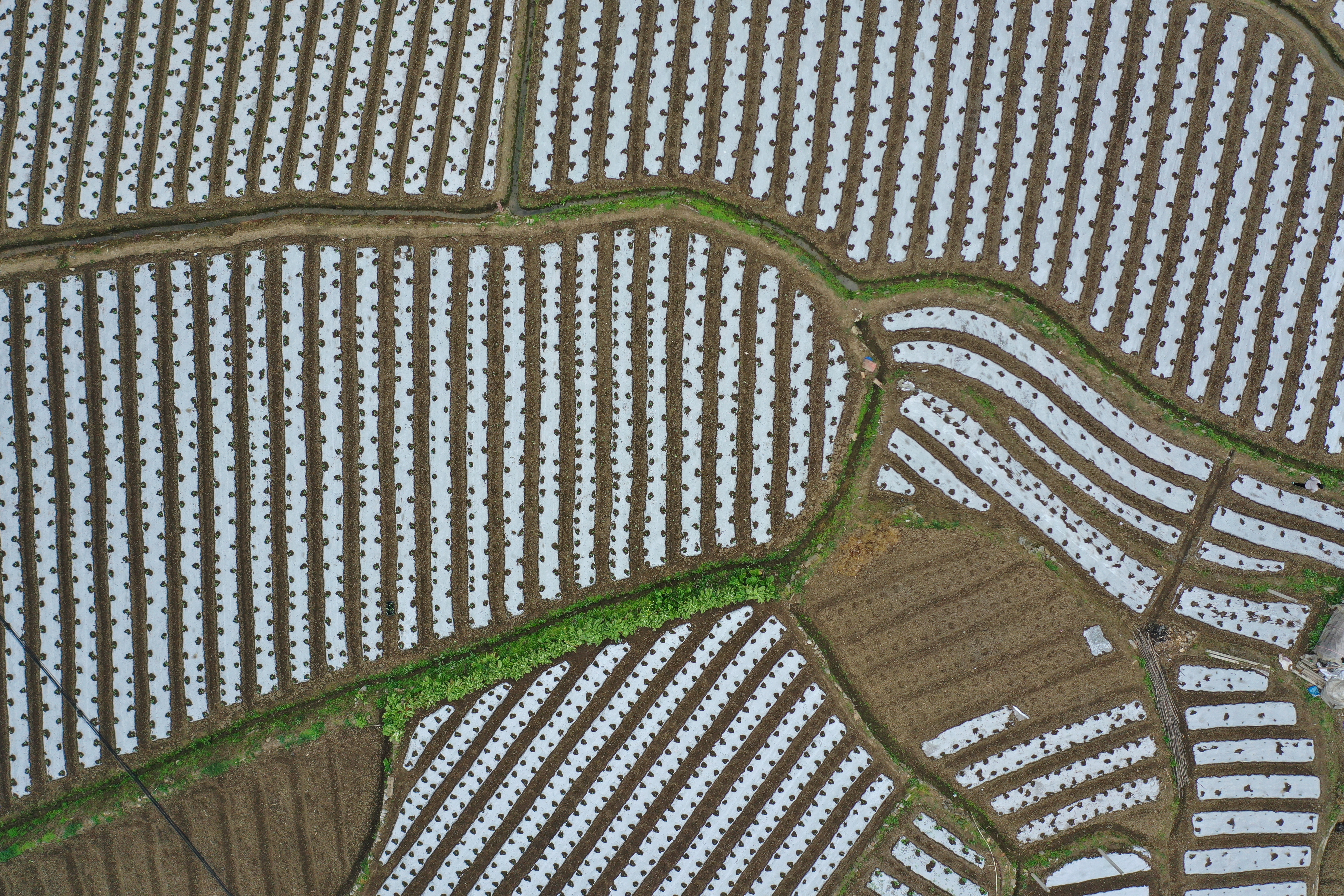 ↑3月3日拍摄的断桥村早熟蔬菜基地(无人机照片)。