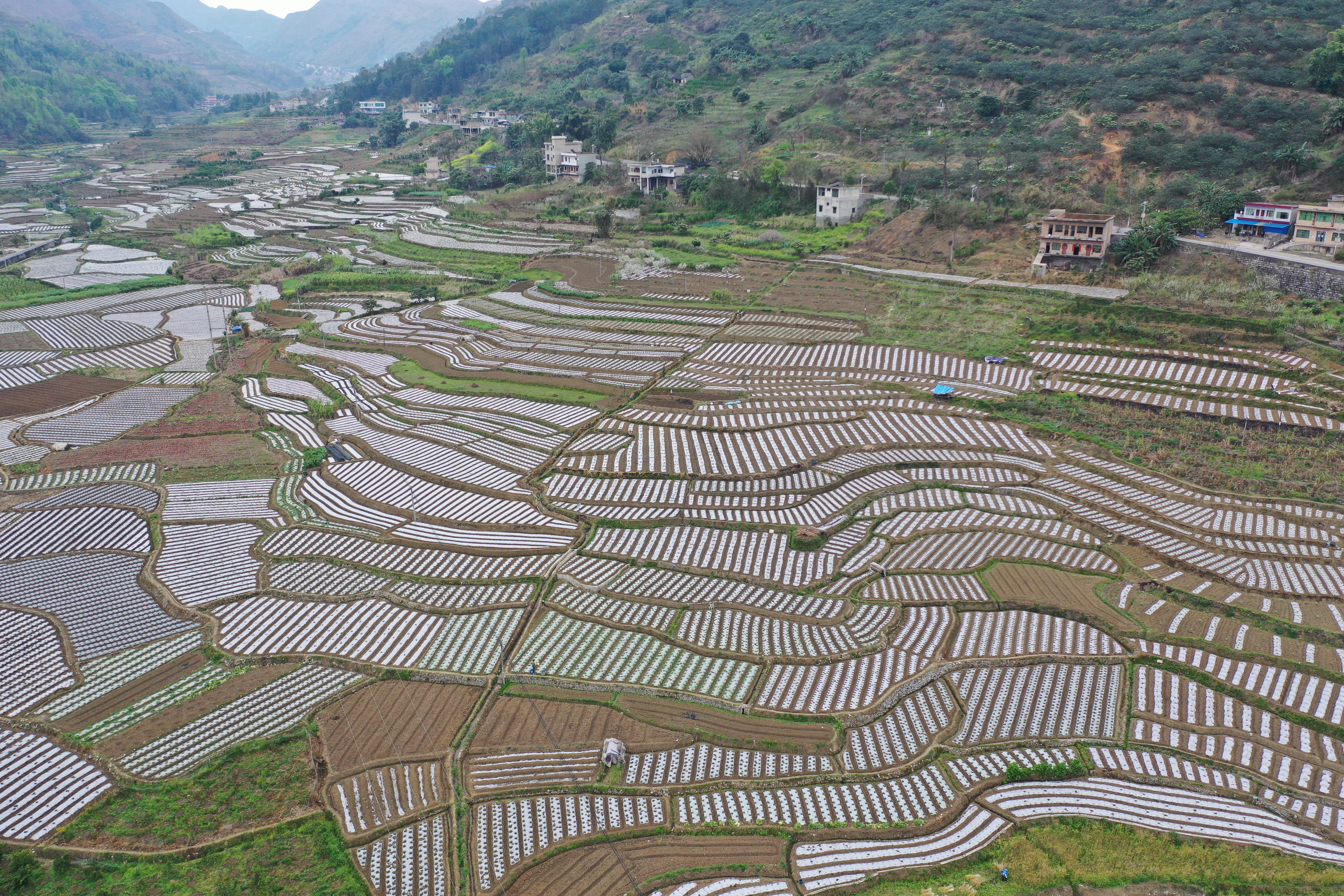 随着气温回升,在贵州省安顺市关岭布依族苗族自治县断桥镇断桥村,农民们抢抓农时栽种辣椒、茄子、西红柿等。占地千余亩的早熟蔬菜基地宛如一幅高原春耕图。