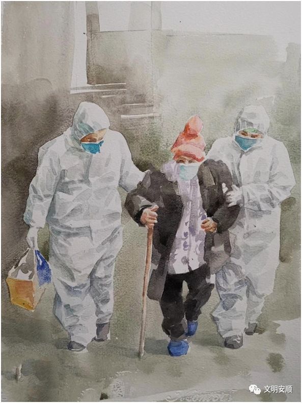 西秀区美术家罗健创作的水彩画《亲人》