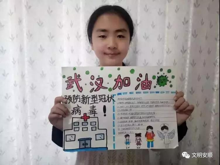 西秀区宁谷镇小小志愿者制作”武汉加油“手抄报