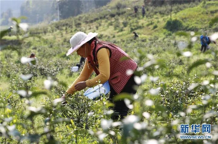 紫云自治县坝羊镇春茶采摘助脱贫 卢维 摄