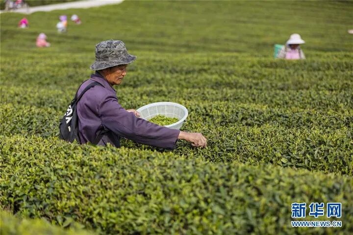 西秀区双堡镇茶农在茶园采摘春茶 陈熙 摄