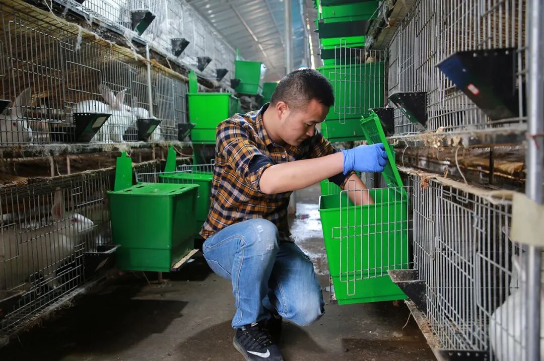 安顺鲁黔农牧科技有限公司饲养员正在饲养兔子