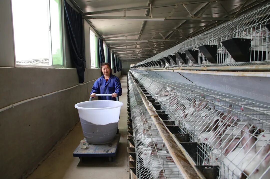 饲养员杨德翠正在投放饲料,“别小瞧这兔子,可是我们脱贫致富的宝贝,这批兔子还有20多天就能出栏了。”一边喂养兔子,她一边和记者攀谈:“在养兔场工作,每月工资3000元,不用日晒雨淋,还方便照顾家里老人、孩子,日子比以前种地好太多咯!”