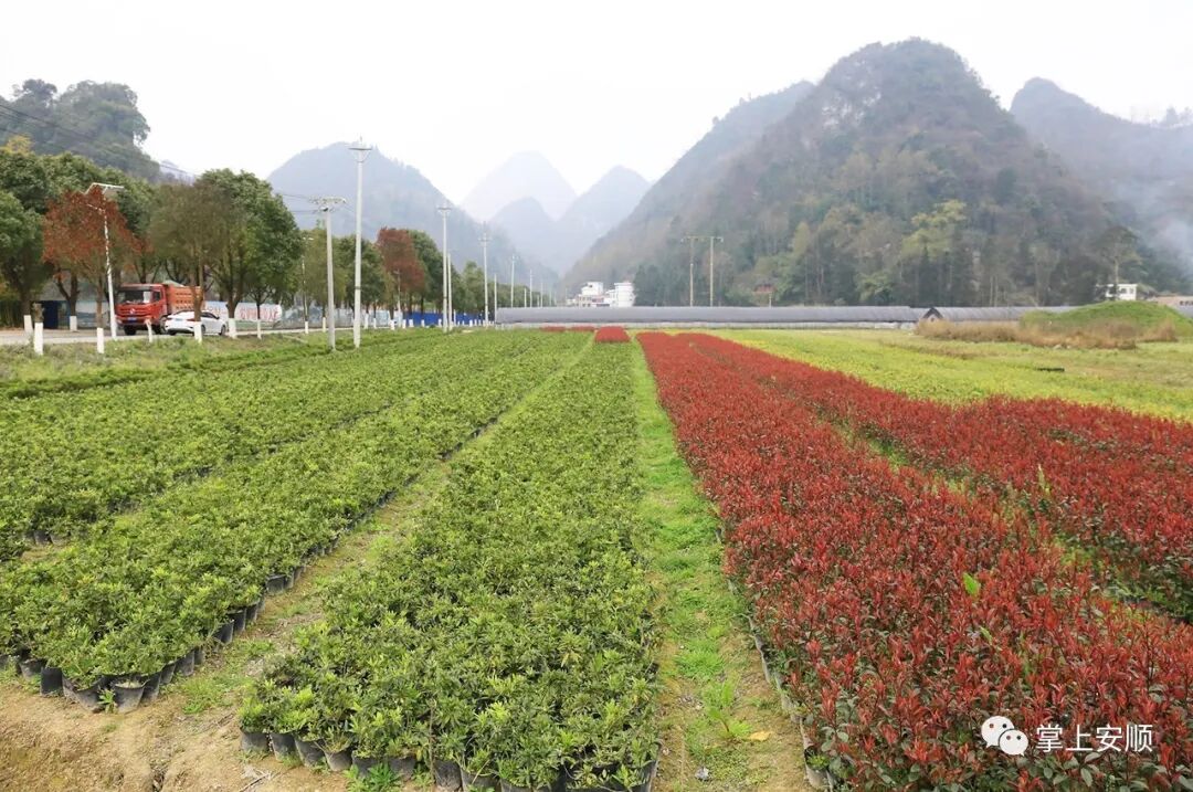 在打饶村窝托组公路旁苗圃产业基地,成片的苗木花卉在春天里散着翠绿。