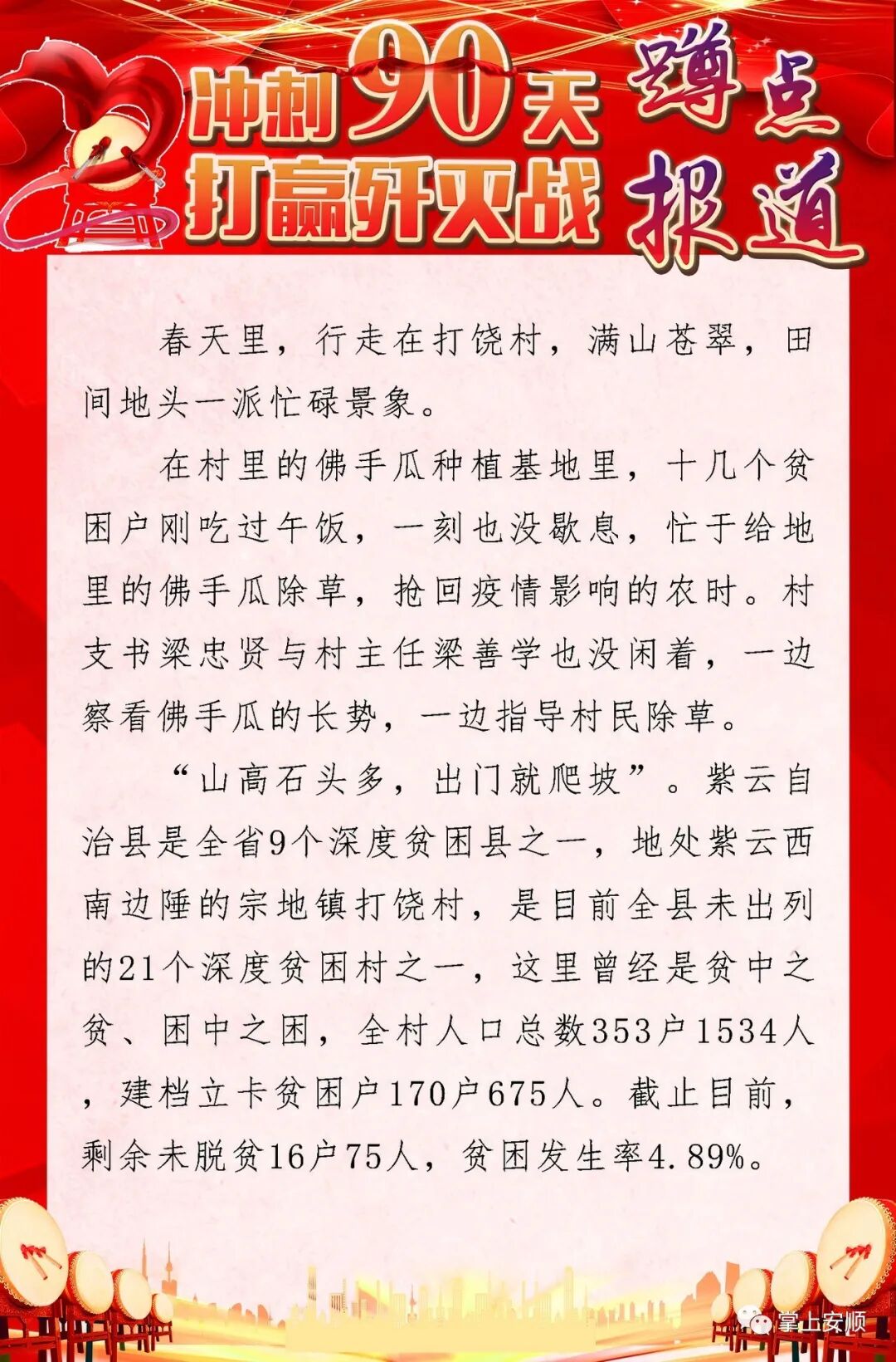 为确保今年6月30日前紫云全县所有贫困人口全部达到脱贫标准,所有贫困村全部达到退出标准,夺取脱贫攻坚全面胜利,紫云自治县认真落实省委、市委召开的关于“冲刺90天打赢歼灭战”会议精神,下发《紫云自治县脱贫攻坚“冲刺90天打赢歼灭战”总攻方案》通知,以深度、极度贫困地区为主战场持续推进,查漏补缺,巩固提升。