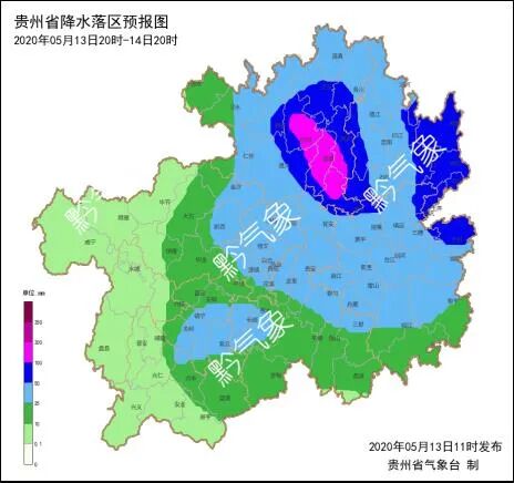 省气象台13日中午发布暴雨预报,预计13日傍晚到14日,我省有较强降水过程,遵义、铜仁等省的东部、北部有中到大雨,局地暴雨,个别乡镇有大暴雨。降水最强时段发生在13日夜间至14日白天,预计最大雨量达110-140毫米,小时雨强达30-40毫米,最大小时雨强将达50-70毫米!