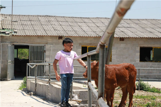 王华银借钱养牛。每天自己割草、喂养,早出晚归,皮肤晒得黝黑。几年下来,他的养殖场越来越大,还成立了合作社,带领村里的贫困户一起发展。