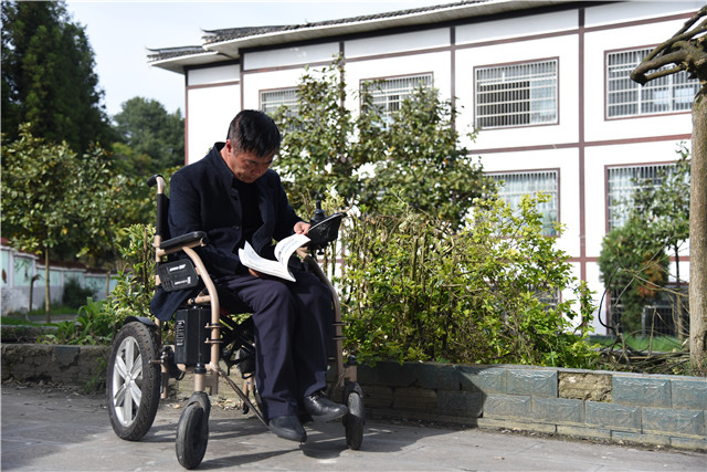 “我现在只有左手可以正常活动,经常怕冷。”张家嵩眼望前方说,轮椅跟着阳光走,他就会觉得温暖。
