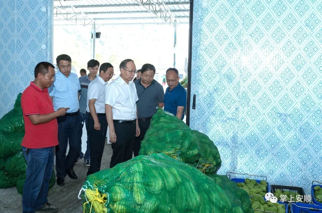 陈训华首先来到猫营镇牛场坡村蔬菜收购基地,走进蔬菜分拣点和冷藏室等地,详细询问当前蔬菜销售情况,当得知该基地收购紫云生产的辣椒、豇豆、佛手瓜等,已远销广东、上海等地时,陈训华要求基地要规范化管理,不断提高蔬菜产品附加值;要加强产销对接,健全产业发展与群众的利益联结机制,以产业带动更多群众就近就业、增收致富。