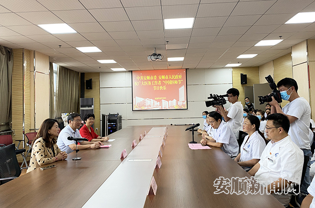 今年8月19日是第三个“中国医师节”,当日上午,市委副书记吴刚平,副市长周丽莉一行先后来到市人民医院、市妇幼保健院、西秀区人民医院、安顺三〇二医院、市中医院,看望和慰问部分临床一线医师,并代表市委、市政府向全市广大医务工作者送上节日的问候和美好祝愿。