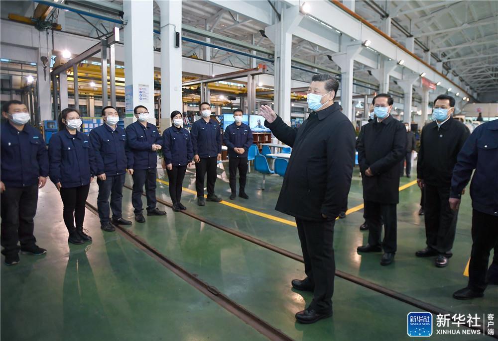 在浙江,习近平来到生产线旁,同工人们亲切交谈,询问大家返岗途中是否都顺利、复工后生产生活还有哪些困难、工资发放是否正常。他要求确保市民的“米袋子”“菜篮子”货足价稳,确保农民的“钱袋子”富足殷实。