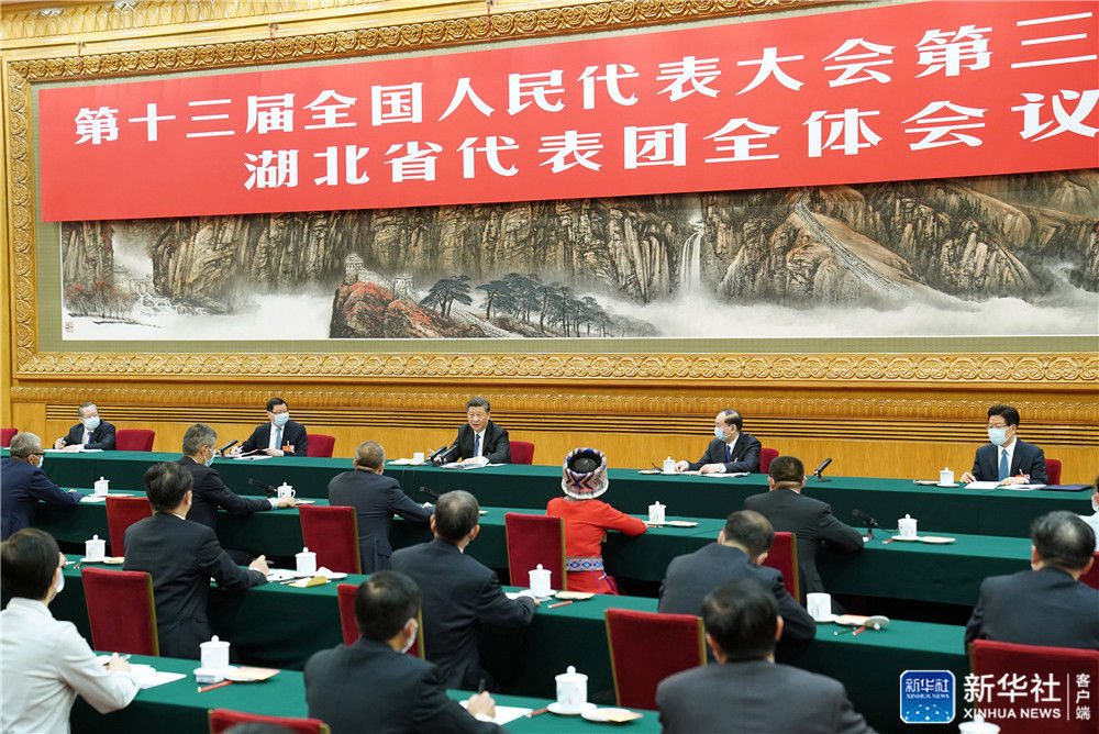 5月24日,习近平总书记在全国两会上参加湖北代表团审议。今年两会因疫情原因压缩了日程,每位中央领导同志“下团组”的次数也随之减少。“我提出,湖北代表团一定得来一下。你们是湖北6000万人民的代表,我要看望一下大家。”