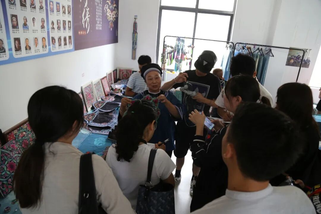 采访团参观了城南社区紫云自治县鑫宇航制衣厂、苗岭山花刺绣加工厂等扶贫车间,看见搬迁群众正在踩着缝纫机加工服装,妇女们穿针引线绣制苗族、布依族传统服饰、挂件,一针一线之间彰显着民族特色。