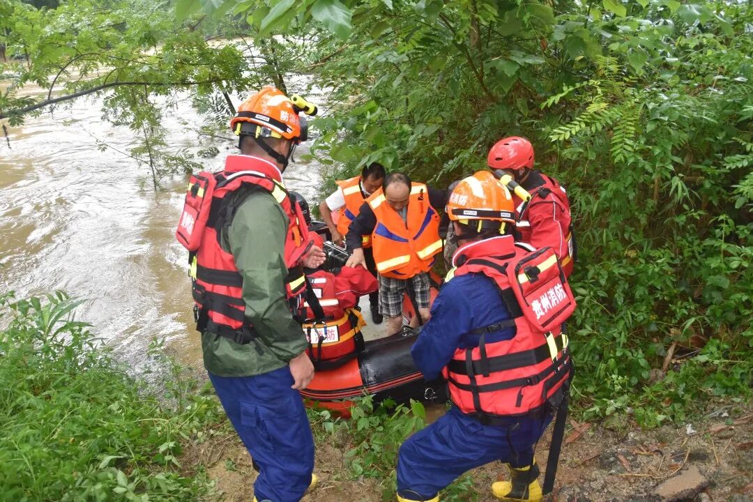 消防救援人员到达现场后发现,此时过境山洪已将通往对岸的唯一通道淹没,8名工友被困对岸无法自行逃离,但他们所处位置安全。了解现场情况后,消防救援人员组成3人的救援小组利用皮划艇疏散被困人员,消防救援人员到对岸后,对被困工友穿上救生衣,做好安全措施,再将他们分几次进行转移。11时20分,成功将8名被困人员全部转移至安全区域。