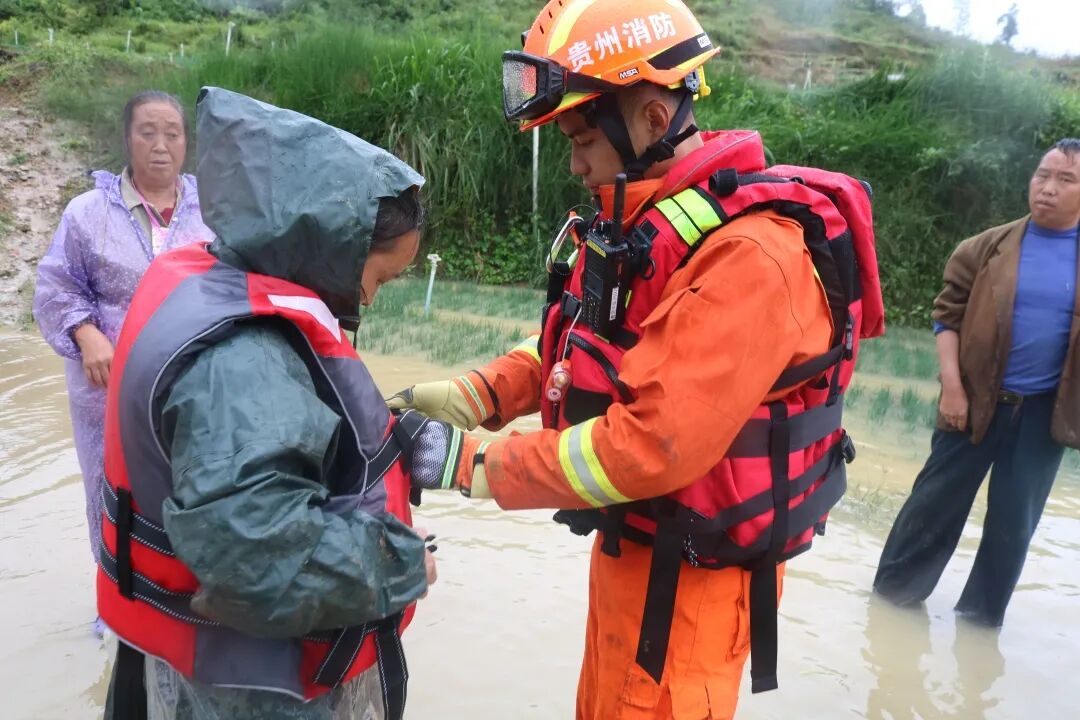 9月14日9时30分,位于贵州省安顺市普定县焦家村由于连日降雨阻断道路,导致10名群众被困无法撤离。接到报警后,当地消防部门立即赶赴现场进行救援。