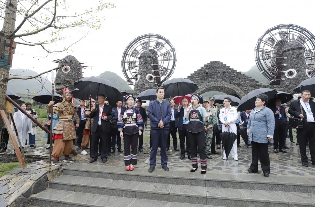 穿过“莲叶何田田”的经开区“十里荷廊”,观摩组来到“藤甲部落”阿歪寨村。顺着石板路深入村寨,映入眼帘的是藤甲谷网红景区、古村落民宿区、民宿研学区、布依风情一条街等农文旅结合的田园综合体,成就了一场“三国”文化穿越之旅。这个曾经的国家一类贫困村,在“兵支书”韦俊的带领下,村党组织以党建引领抓村级治理、脱贫攻坚抓产业发展、以文化传承抓传统村落保护、以村庄整治抓旅游开发,迈上了从社会治安后进村变为社会治理先进村的蜕变之路。