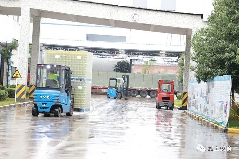高新区羊昌工业园的华兴玻璃有限公司门前,卡车正在进行装货