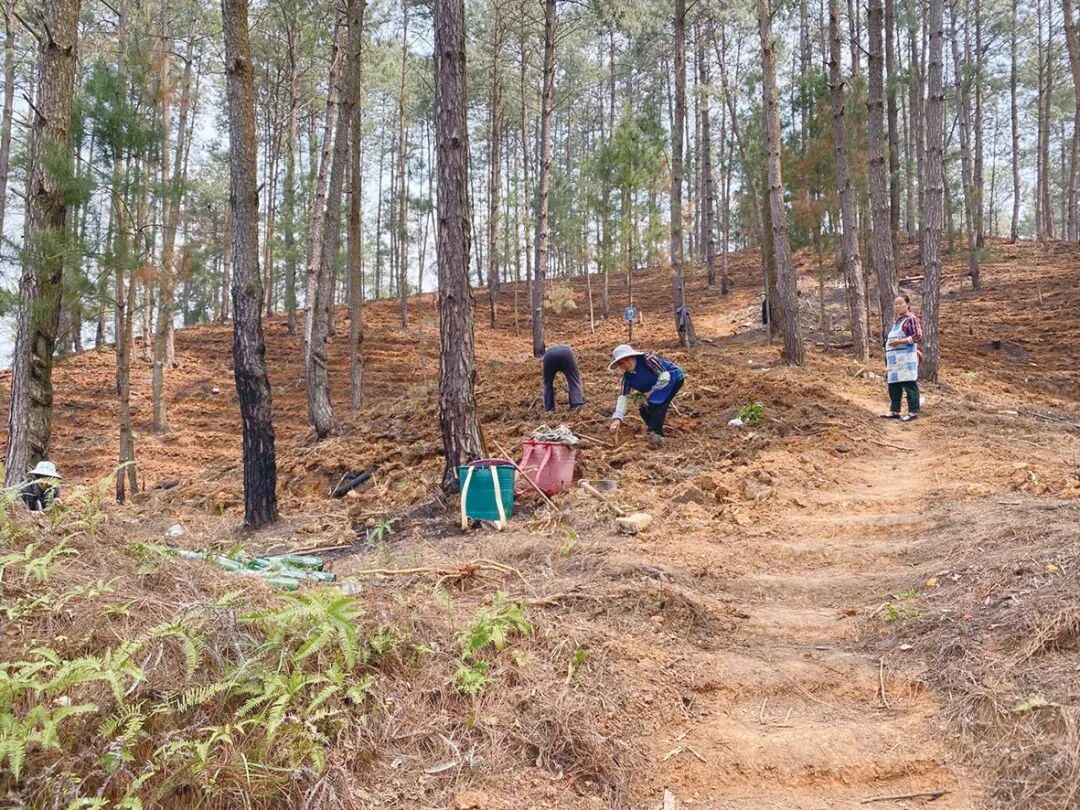 在林下种植基地里,村民们脸上洋溢着丰收的笑容