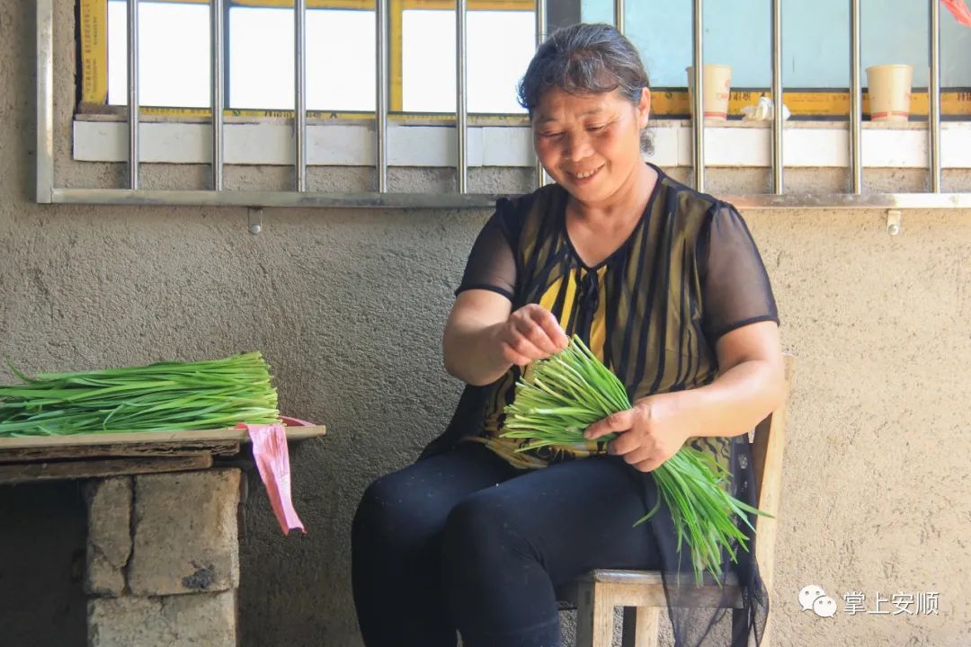杨廷秀在整理刚从地里收割回来的韭菜