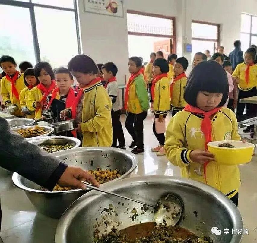 关岭纳磨村纳卜小学学生在食堂排队就餐