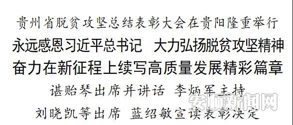 4月23日,贵州省脱贫攻坚总结表彰大会在贵阳隆重举行。省委书记、省人大常委会主任谌贻琴出席并讲话,她强调,要深入学习贯彻习近平总书记在全国脱贫攻坚总结表彰大会上的重要讲话精神和视察贵州重要讲话精神,永远感恩习近平总书记,大力弘扬脱贫攻坚精神,做好巩固拓展脱贫攻坚成果同乡村振兴有效衔接,为在新征程上续写高质量发展精彩篇章、开创百姓富生态美的多彩贵州新未来而不懈奋斗,以优异成绩迎接建党100周年。