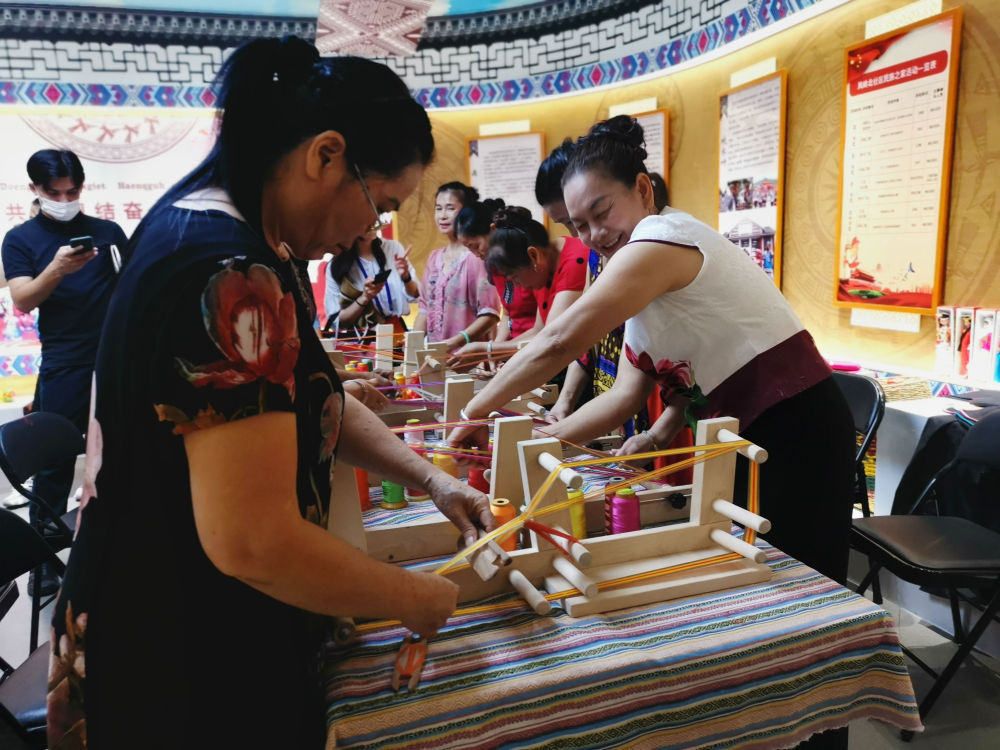 走进广西南宁市青秀区凤岭北社区民族之家,10多位居民正在用简易织机制作壮锦。“社区每月都会举办绣球制作、十字绣、剪纸等活动,我在这里生活了8年,早已把社区各民族同胞当成家人。”壮族居民谭艳春说。