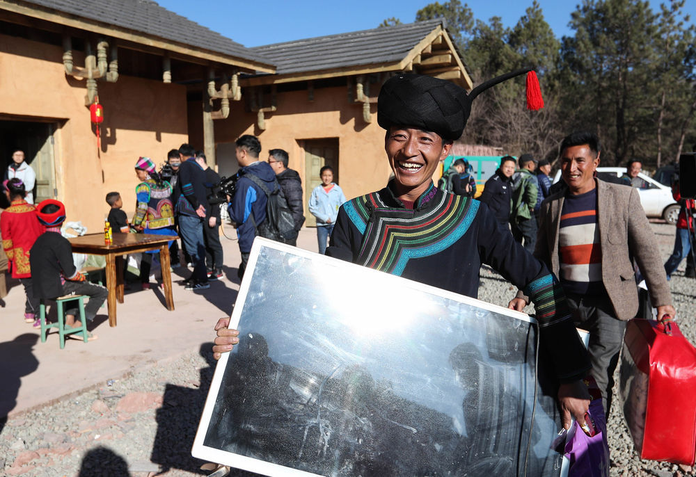 在四川省昭觉县三河村的易地扶贫安置点,彝族群众马海日聪喜搬新居(2019年2月11日摄)。新华社记者 江宏景 摄