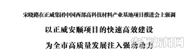 宋晓路要求,全市上下要为正威安顺项目提供最优服务,以最快速度实现项目的落地、建设和投产,实现正威安顺项目在经济发展、民生事业方面的最大效益。全市各级各部门要进一步转变工作作风、强化协调配合,主动增强本领,主动靠前服务,以超常规的举措,全力以赴服务好正威安顺项目的各项推进工作。项目协调推进工作领导小组要定期调度工作推进情况,研究协调解决项目推进过程中的困难和问题,坚定正威集团在安顺投资发展的信心决心。要强化督导督查,落实奖惩制度,确保正威安顺项目各项工作有序推进,早日建成投产,为全市经济社会高质量发展作出积极贡献。
