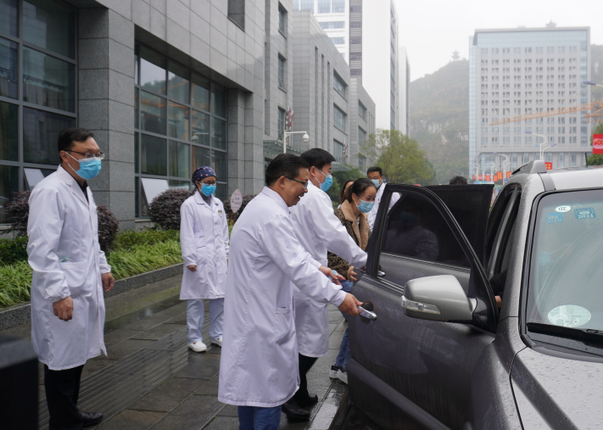 26日上午9点30分,安顺市人民医院简单举行了出征仪式,市人民医院党委书记张波,党委委员、副院长邓勇,党委委员、纪委书记刘玲,党委委员、副院长徐磊、佟玉峰等领导和同事纷纷前来为两位医护人员送行。