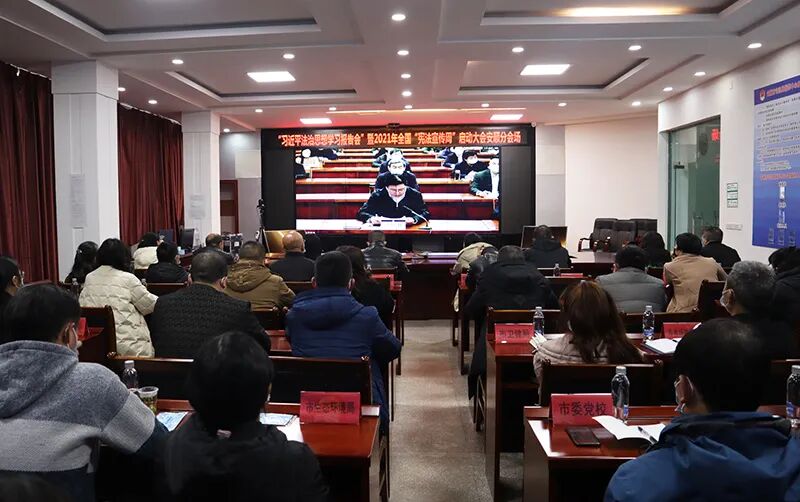 我市组织收听收看“习近平法治思想学习报告会”暨2021年全国“宪法宣传周”启动仪式现场