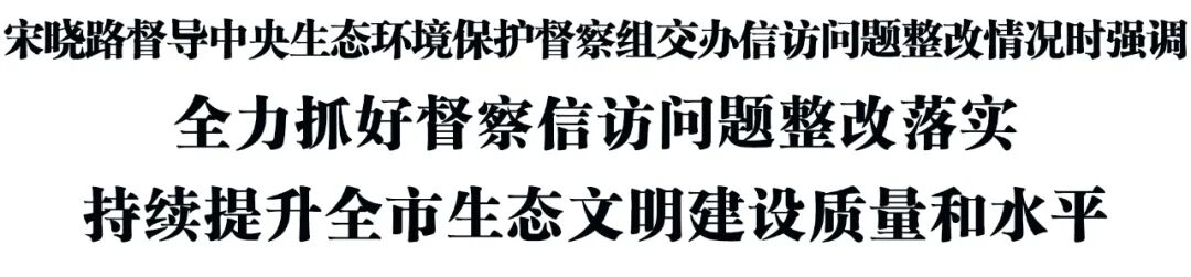 宋晓路要求,各级各部门要深入贯彻落实习近平总书记关于贵州生态文明建设系列重要指示批示精神,从衷心拥护“两个确立”、忠诚践行“两个维护”的政治高度,以最高标准、最严要求、最实举措抓好生态文明建设,通过督察倒逼问题整改和责任落实,持之以恒打好污染防治攻坚战,不断提高人民群众对生态环境保护的获得感、幸福感、安全感,奋力在生态文明建设上出新绩。