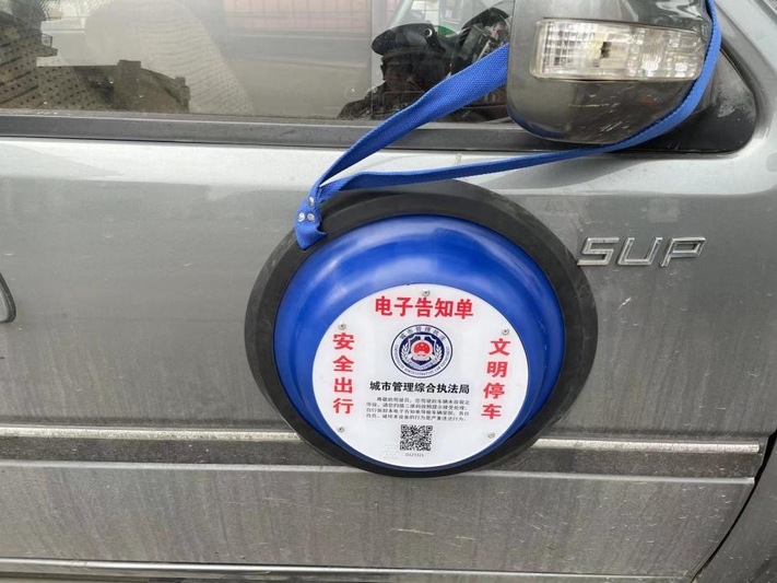 据了解,“电子告知单”是一种可以强力吸附在车门上,并且不影响驾驶的电子锁车设备,外表看起来像一个盆,印有“安全出行 文明停车”等字样,内部装有吸盘、定位系统、报警系统等。城管执法人员将违停车辆的车牌、位置、违停时间、照片等证据上传至后台管理系统后,通过后台一键锁定。